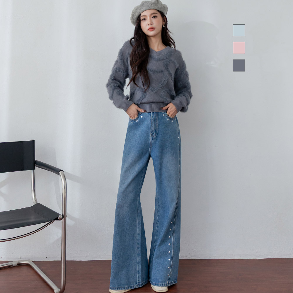 熱賣中🔥 即將售完niceioi 初戀甜蜜立體愛心仿貂毛V領上衣