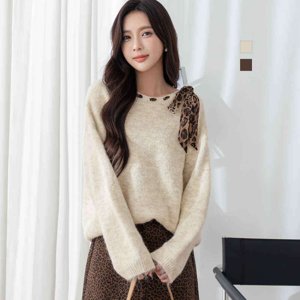 熱賣中🔥 即將售完niceioi 時髦豹紋側綁帶領絨毛包芯紗上衣