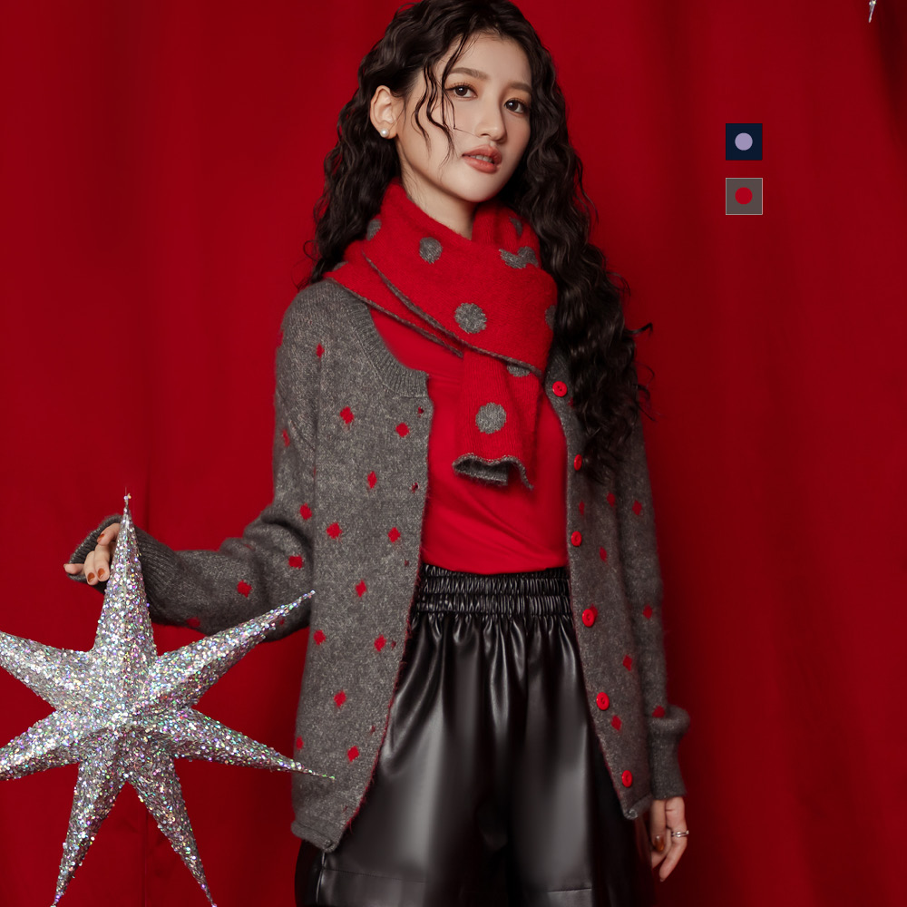 熱賣中🔥 即將售完niceioi 俏皮優雅波點排釦北極絨緹花外套(附圍巾)