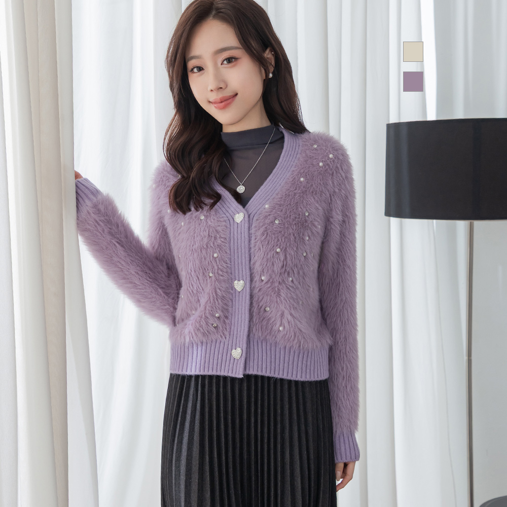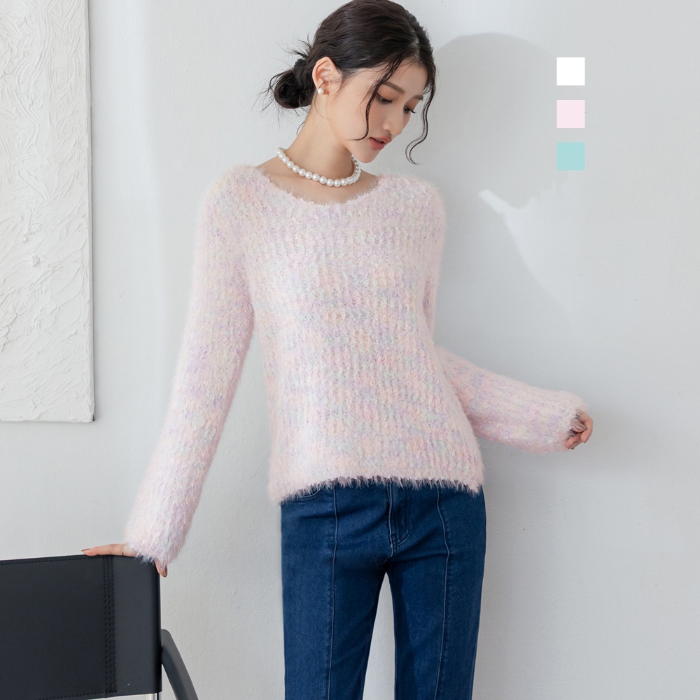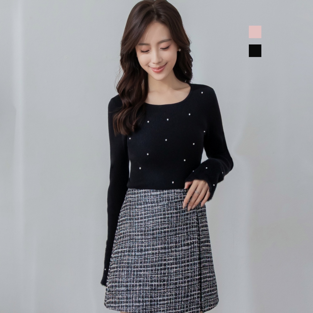 熱賣中🔥 即將售完niceioi 韓系輕甜滿版珍珠水貂毛拼接針織上衣