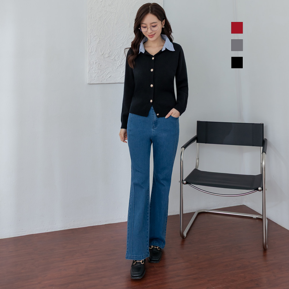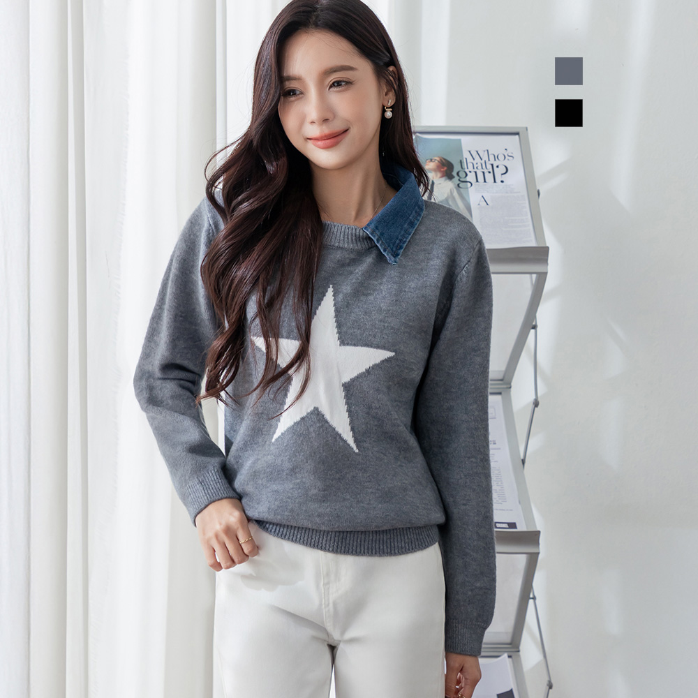 熱賣中🔥 即將售完niceioi 時髦風範拼接丹寧翻領撞色針織上衣
