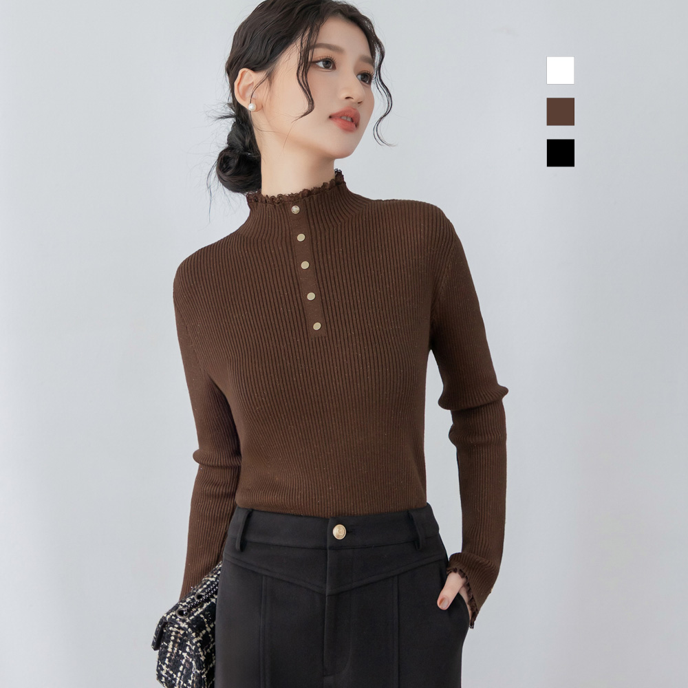 熱賣中🔥 即將售完niceioi 秋冬輕暖高領蕾絲滾邊包芯紗針織上衣