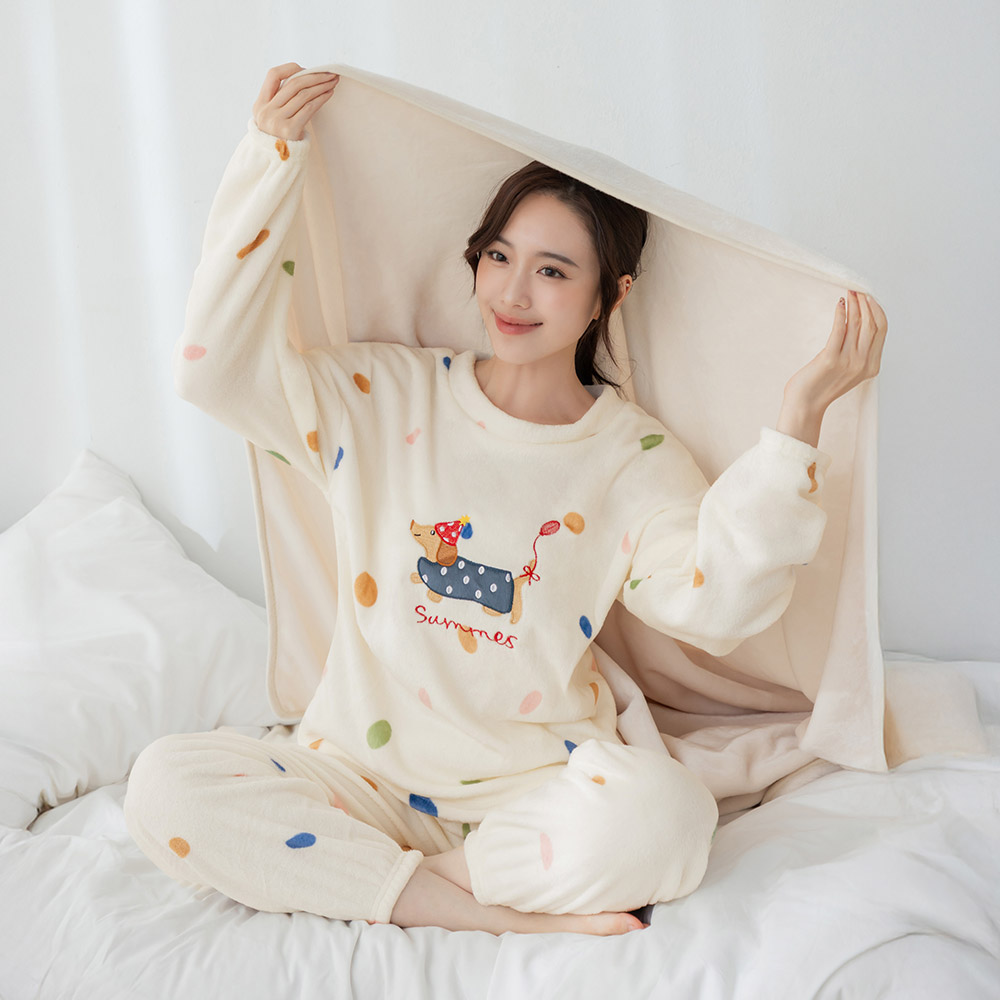 熱賣中🔥 即將售完niceioi 萌寵Party!繽紛圓點珊瑚絨1+1睡衣套裝
