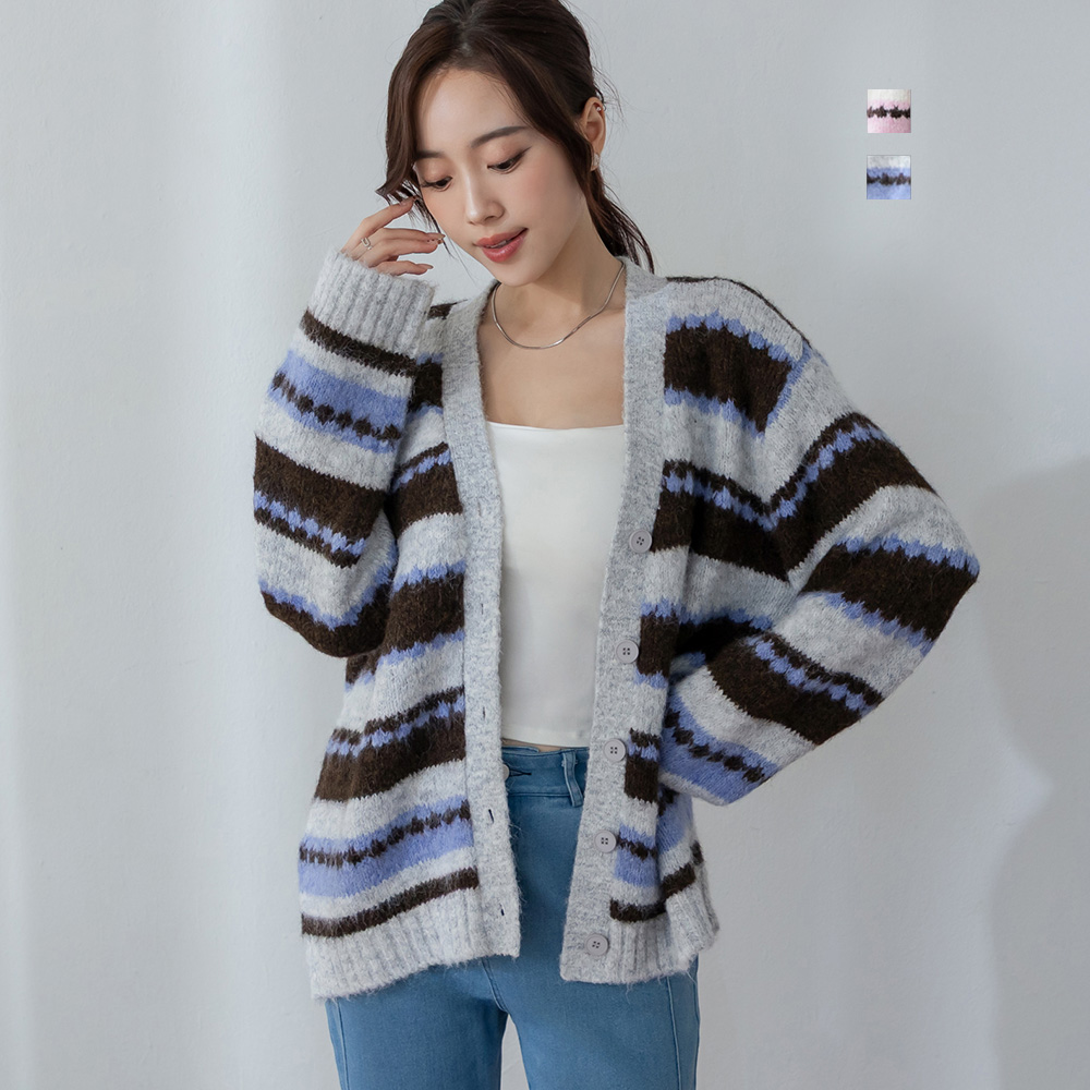 熱賣中🔥 即將售完niceioi 甜美少女感V領撞色寬條紋絨毛外套