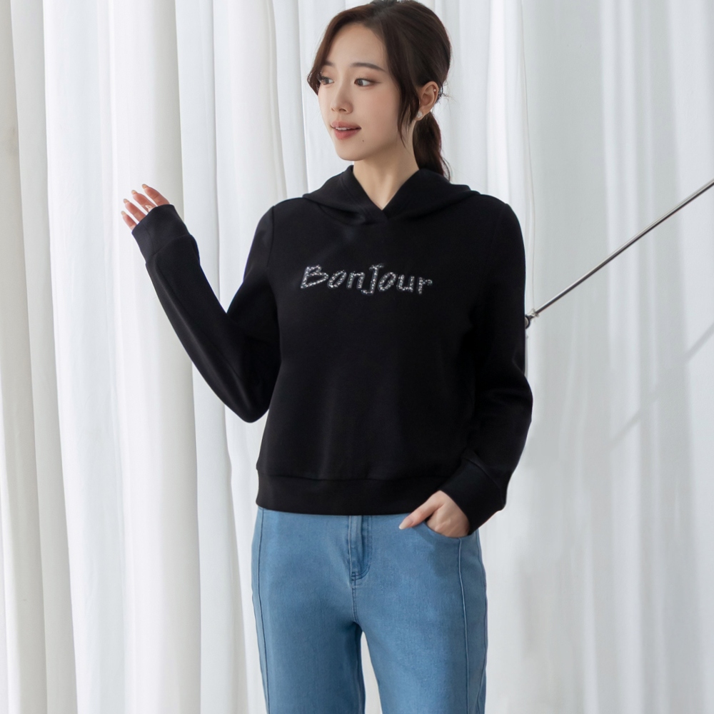 熱賣中🔥 即將售完niceioi Bonjour! 字母刺繡連帽內刷絨空氣棉上衣