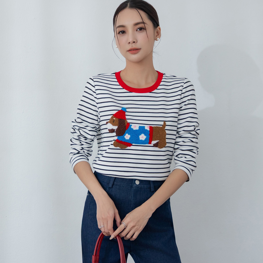 熱賣中🔥 即將售完niceioi 療癒萌寵橫條紋長袖上衣