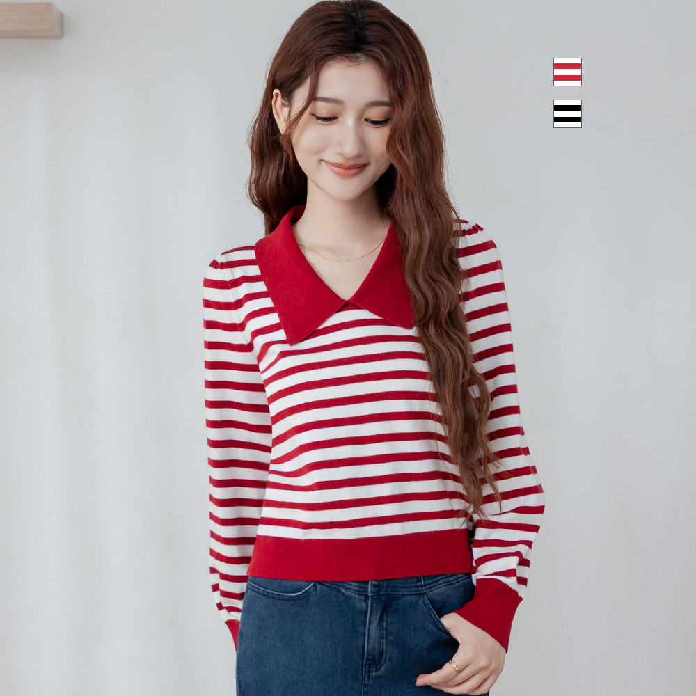 熱賣中🔥 即將售完niceioi Miu系活力條紋翻領澎澎袖安迪絨上衣