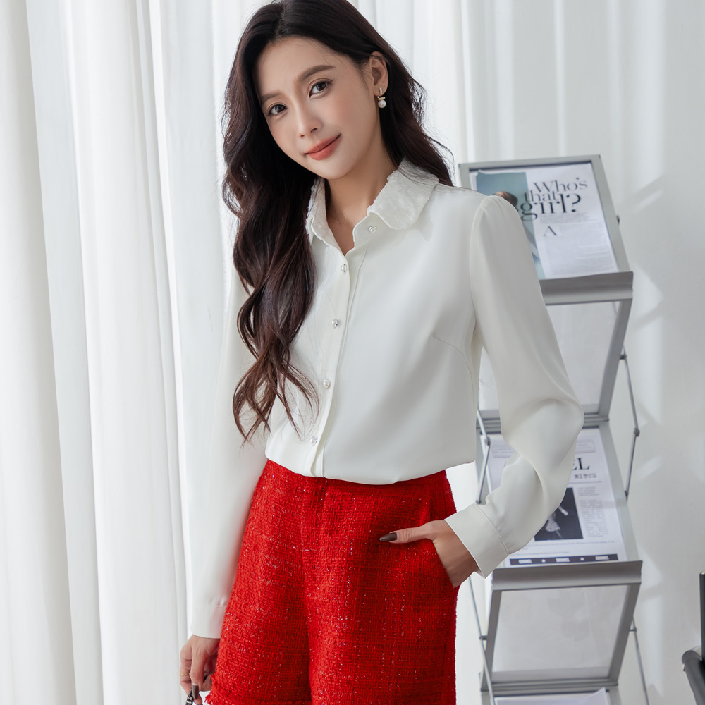 熱賣中🔥 即將售完niceioi 靜奢極簡花領珍珠釦時裝布襯衫