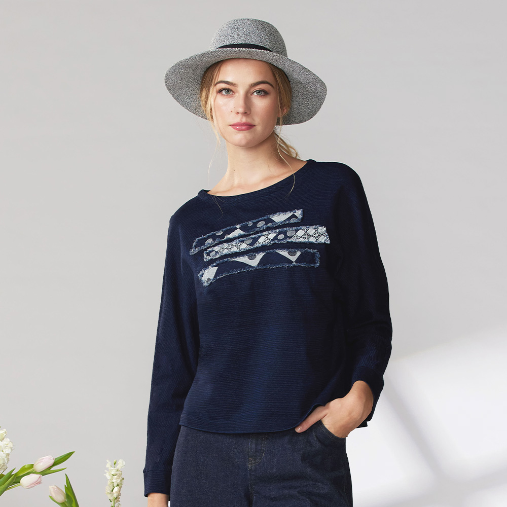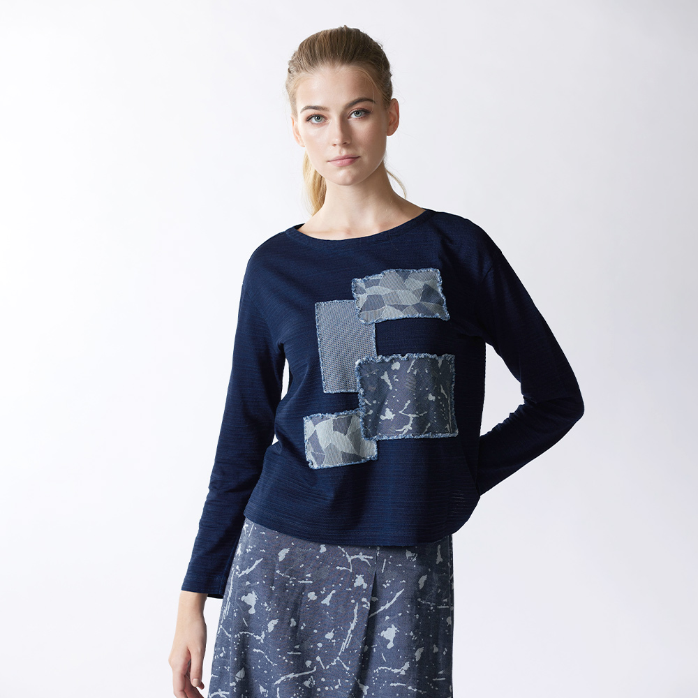 熱賣中🔥 即將售完INDIGO拼花造型小船領上衣