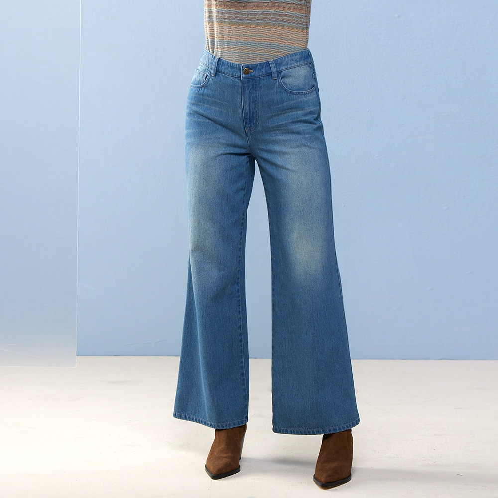 熱賣中🔥 即將售完純棉刺繡刷色小喇叭口袋牛仔褲