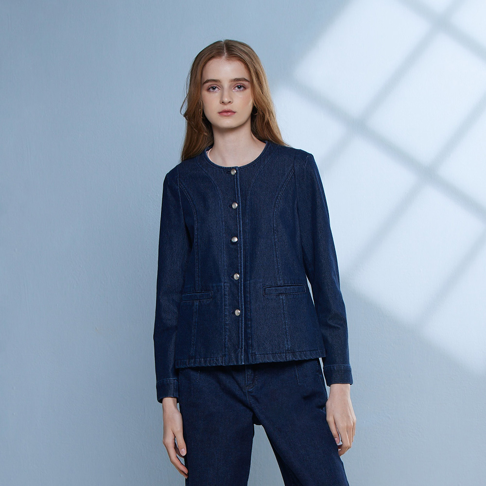 熱賣中🔥 即將售完彈性針織感圓領短版牛仔外套