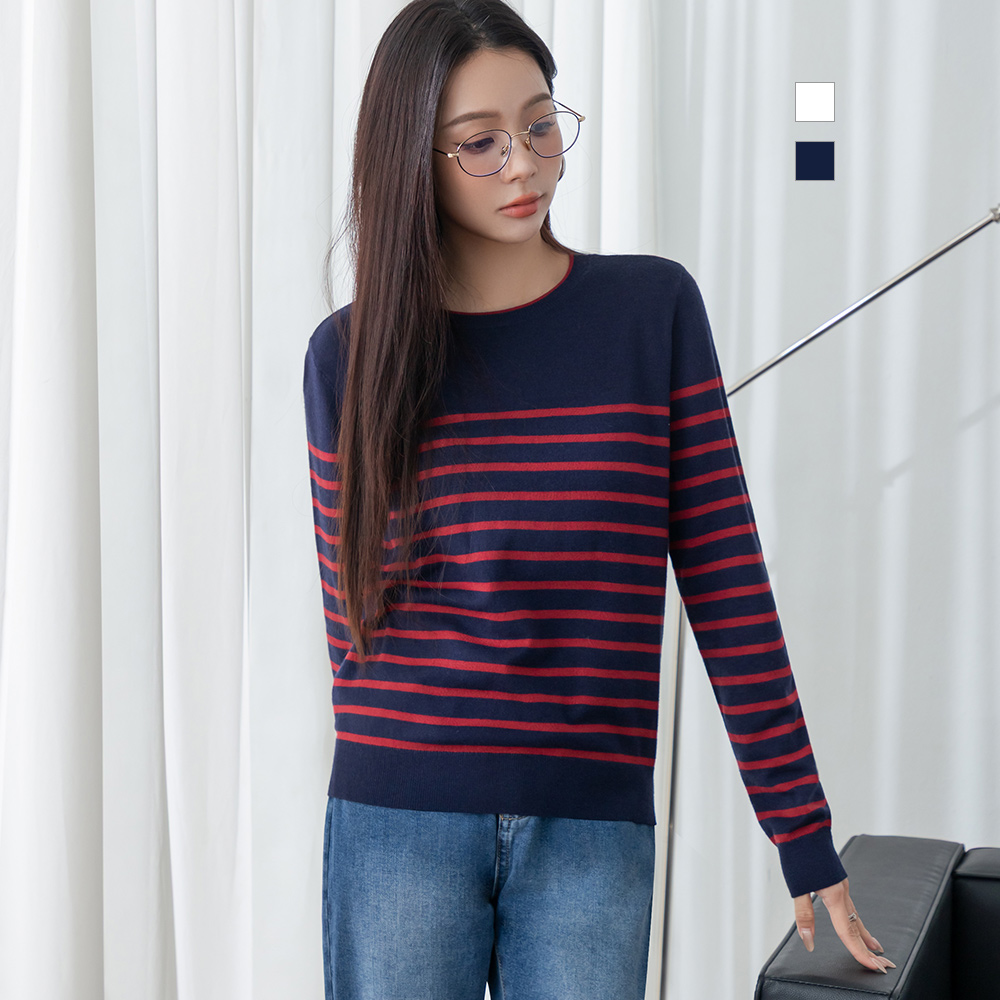 熱賣中🔥 即將售完niceioi 繽紛甜感大圓領條紋馬海毛針織上衣