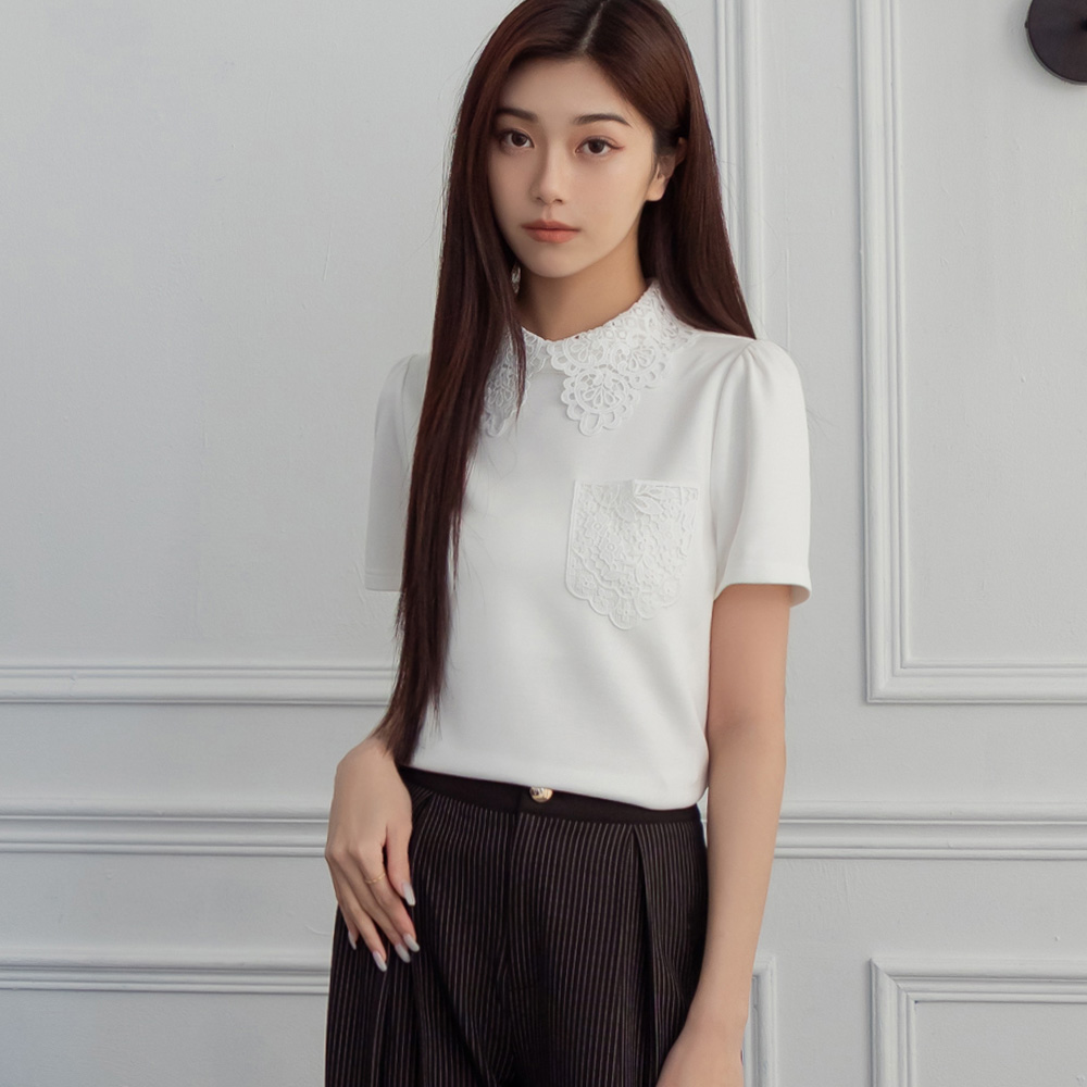 熱賣中🔥 即將售完niceioi 韓系靜雅蕾絲珍珠空氣棉上衣