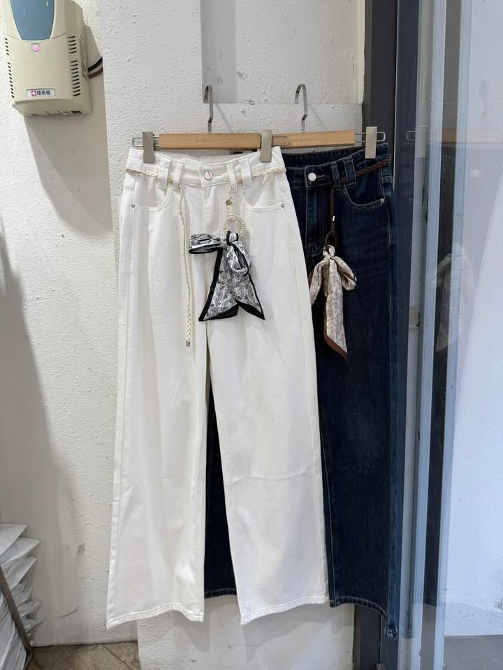 熱賣中🔥 即將售完B44編織皮帶+絲巾牛仔寬褲