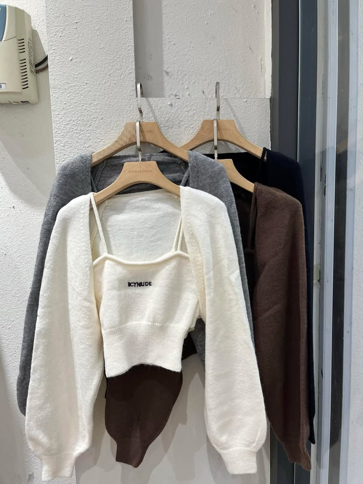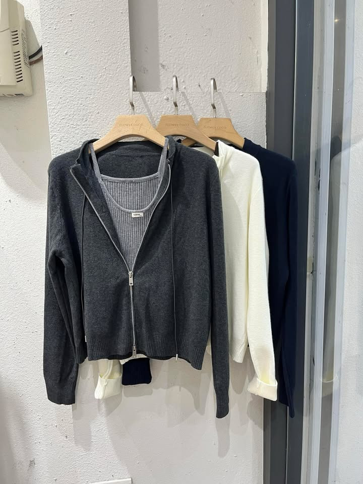 熱賣中🔥 即將售完B39細肩坑條背心+拉鍊針織外套SET