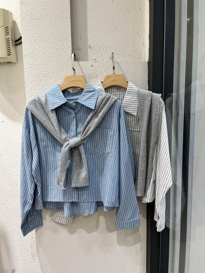 熱賣中🔥 即將售完B37直條口袋襯衫+披肩SET