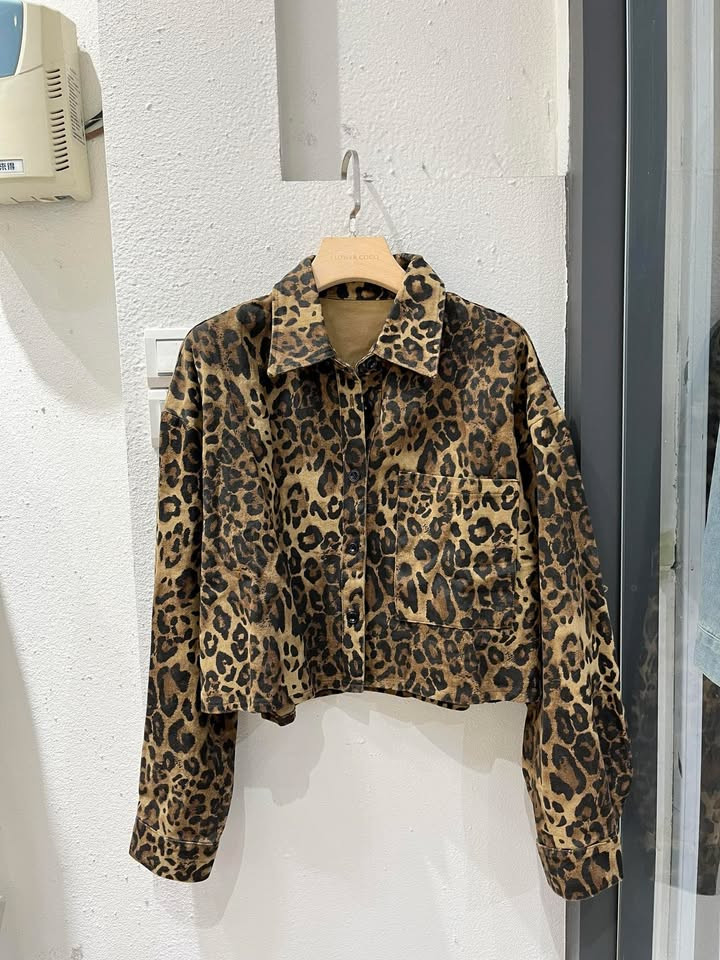 熱賣中🔥 即將售完B12高訂-口袋豹紋黑釦襯衫