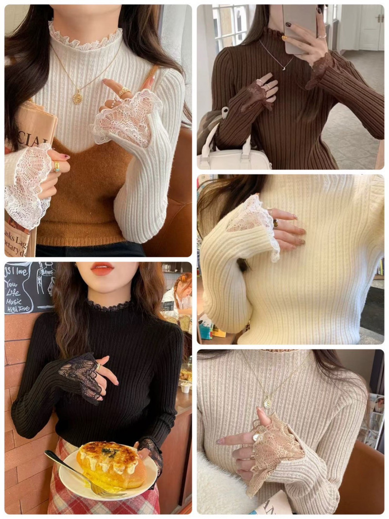 熱賣中🔥 即將售完A203蕾絲拼接高領坑條上衣