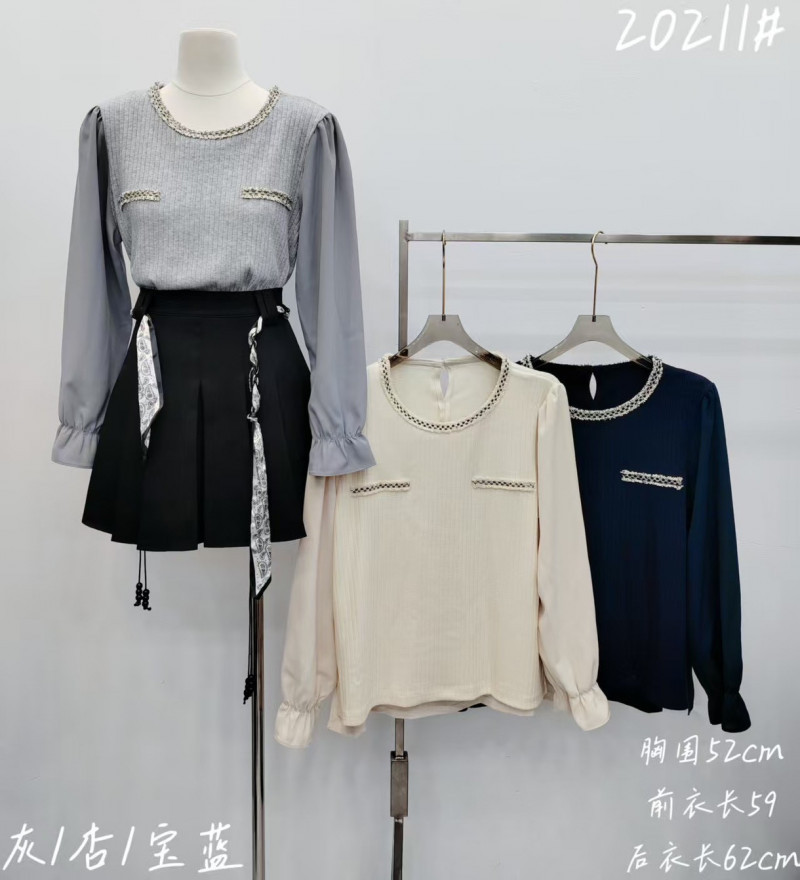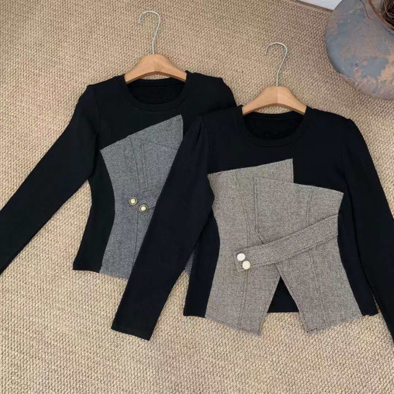 熱賣中🔥 即將售完A235珍珠扣異材質拼接上衣