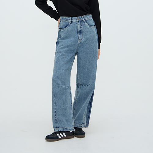 熱賣中🔥 即將售完【E JEANS】雙邊陰影洗色壓褶造型微闊腿牛仔褲 - 兩色