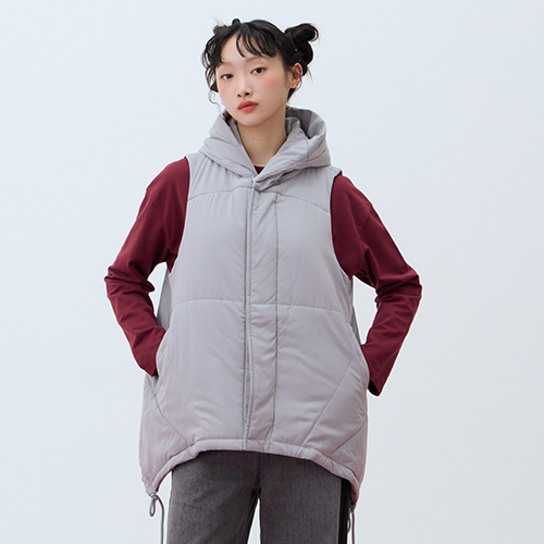 熱賣中🔥 即將售完【E-WEAR】弧狀下擺綁繩造型舖棉連帽背心 - 兩色
