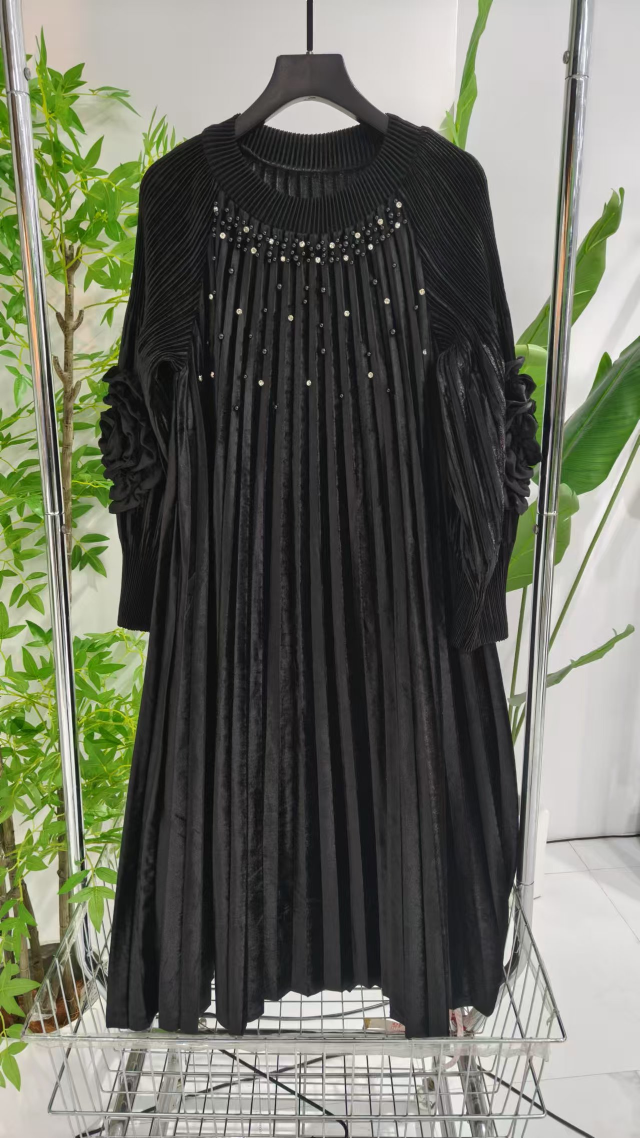 熱賣中🔥 即將售完2189手工折釘珠鑲鑽絲絨連衣裙-長洋【裙長116cm】