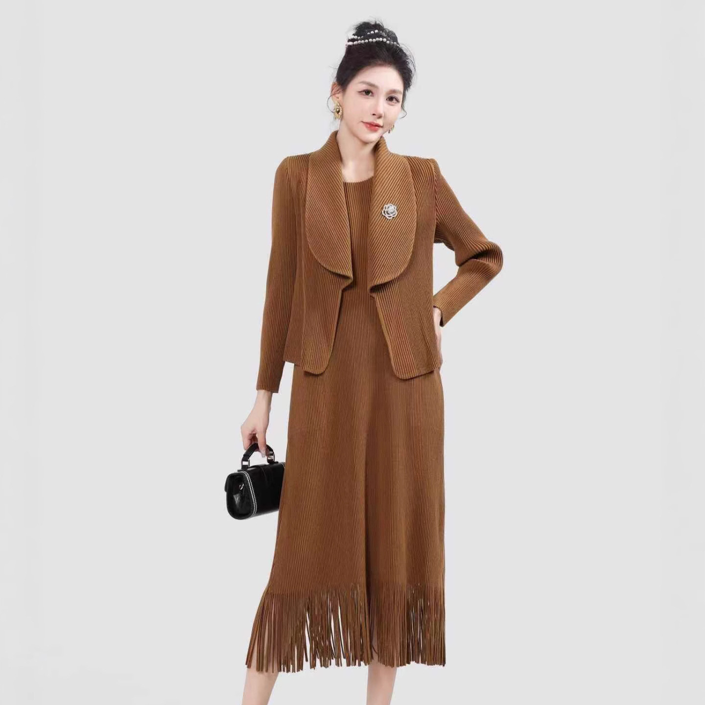 熱賣中🔥 即將售完79- 毛呢套裝胸針上衣流蘇連衣裙-長洋【衣長59cm裙長122cm】】