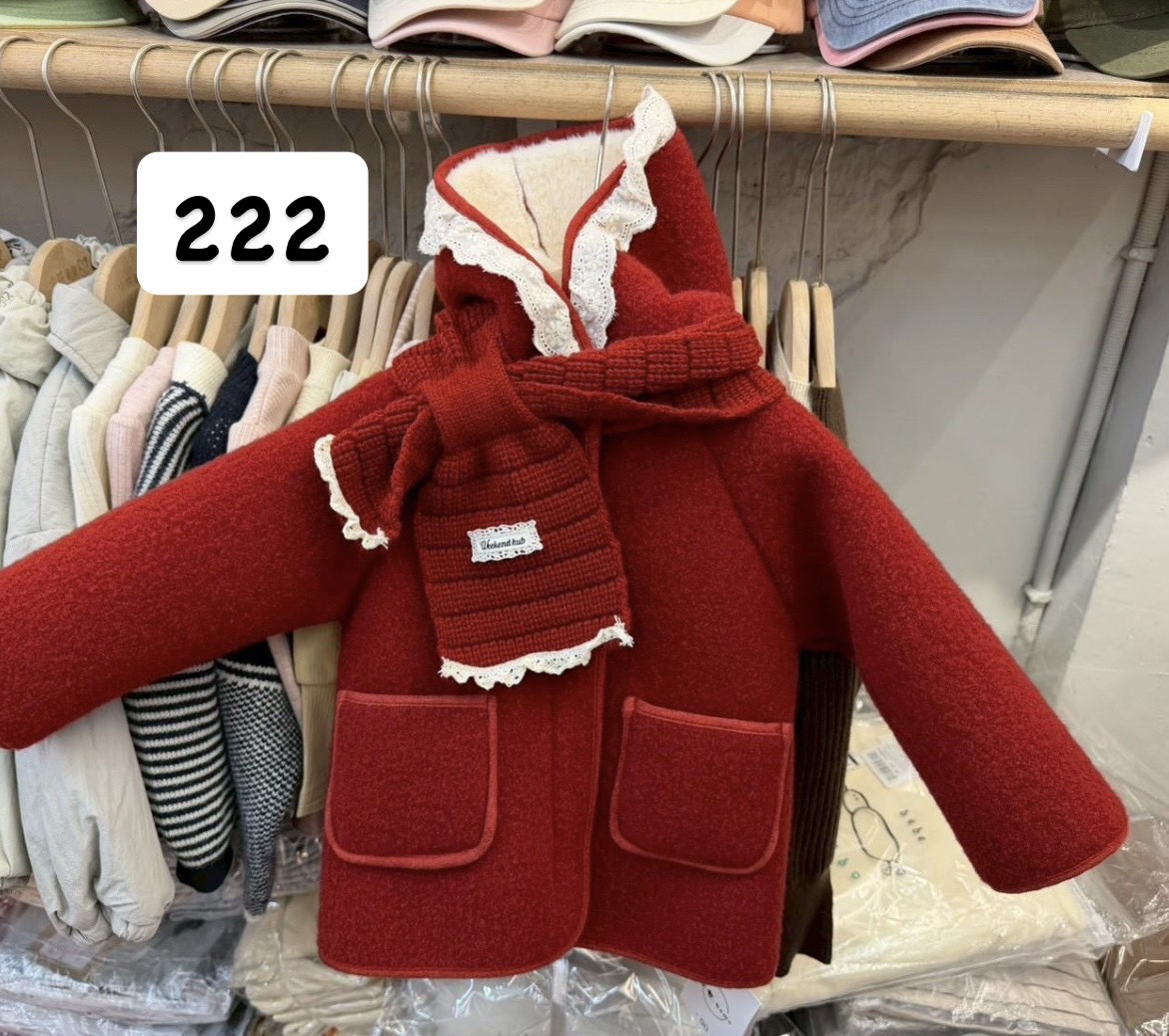 熱賣中🔥 即將售完童U1101-222紅蕾絲帽內刷毛長袖外套+圍巾