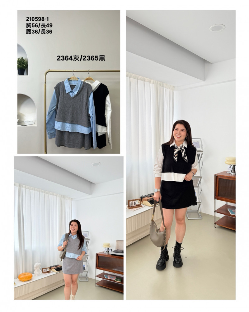 熱賣中🔥 即將售完女PF2-0919(08)-假2件針織襯衫套裝