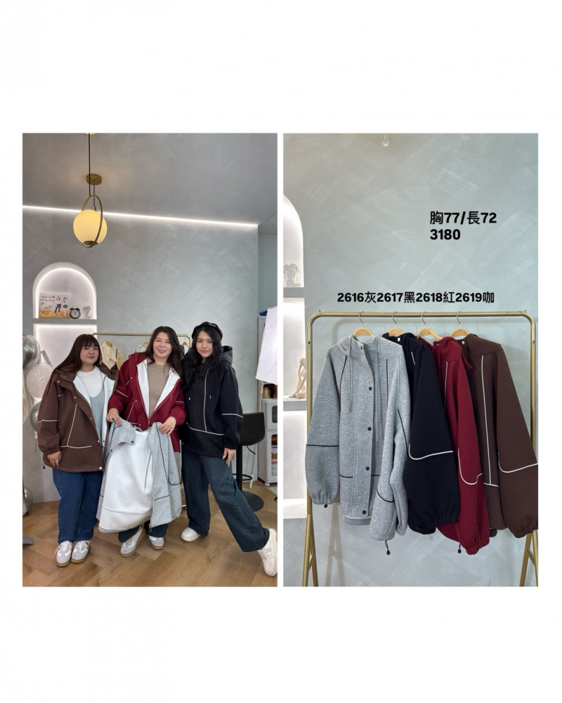 熱賣中🔥 即將售完女SD-1014(08)-連帽滾邊線條外套