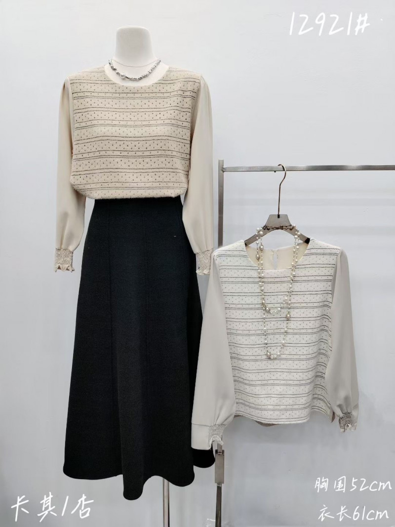 熱賣中🔥 即將售完A304設計款磨毛點點拼接雪紡上衣(杏)