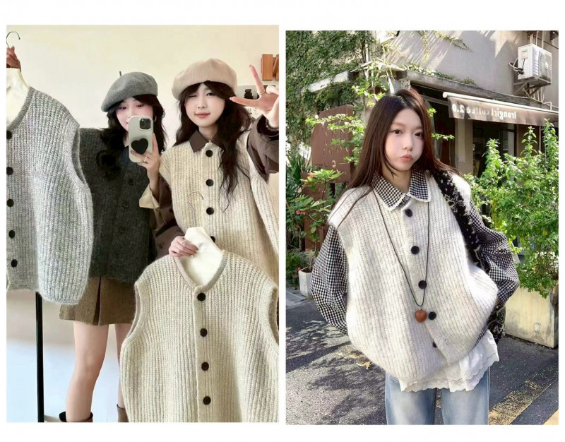熱賣中🔥 即將售完A338百搭款黑釦粗針織背心