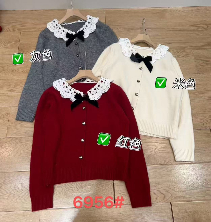 熱賣中🔥 即將售完A342緹花領蝴蝶結針織上衣