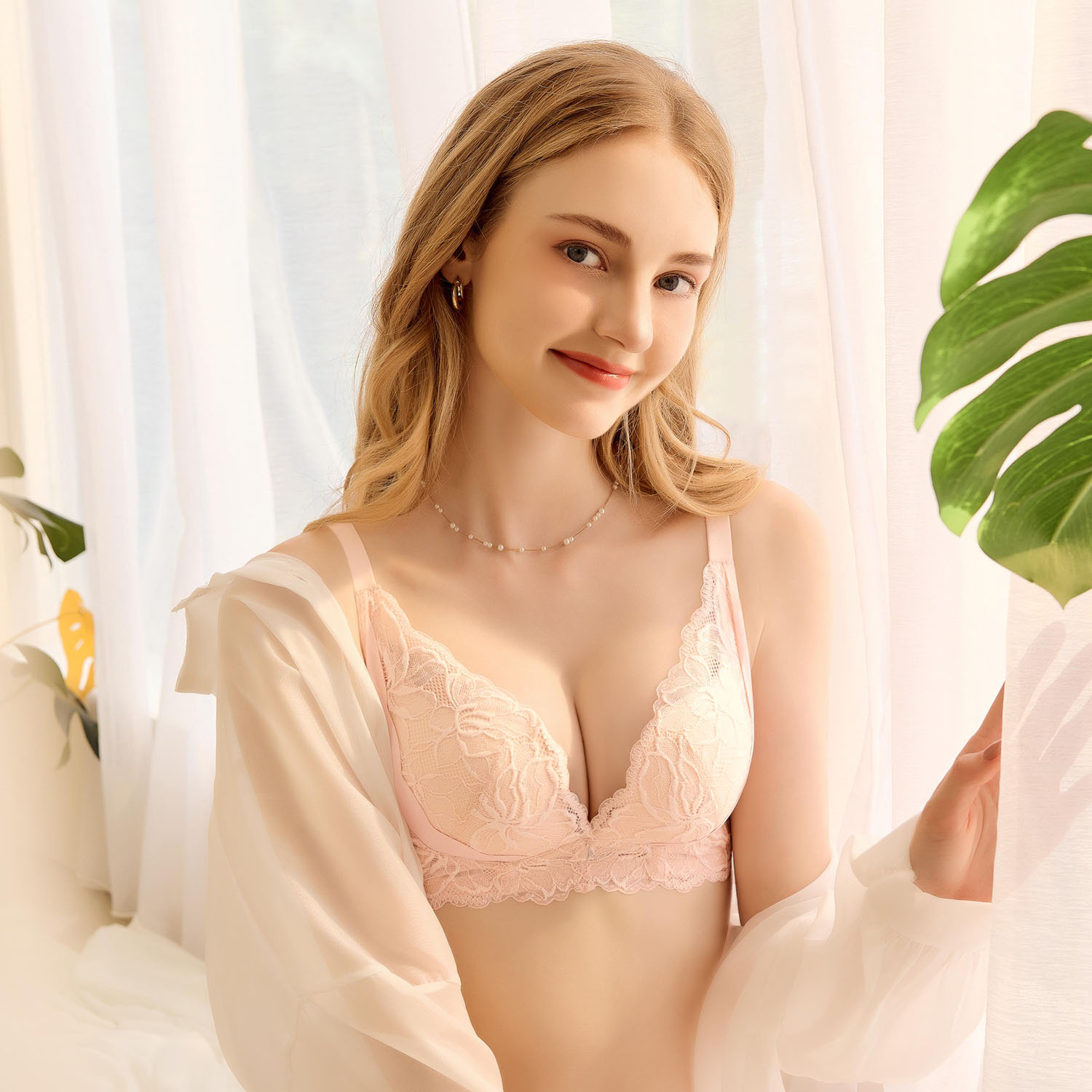 熱賣中🔥 即將售完[Miss Audrey] 芙蘿拉 Beauty Bra-花間秘語呢喃深V型無鋼圈內衣-柔美桃粉