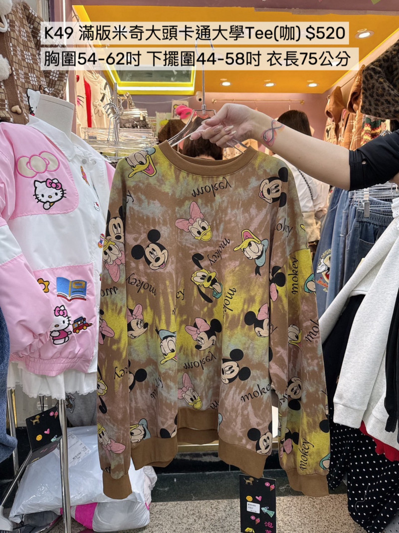 熱賣中🔥 即將售完K49滿版米奇大頭卡通大學Tee(咖)