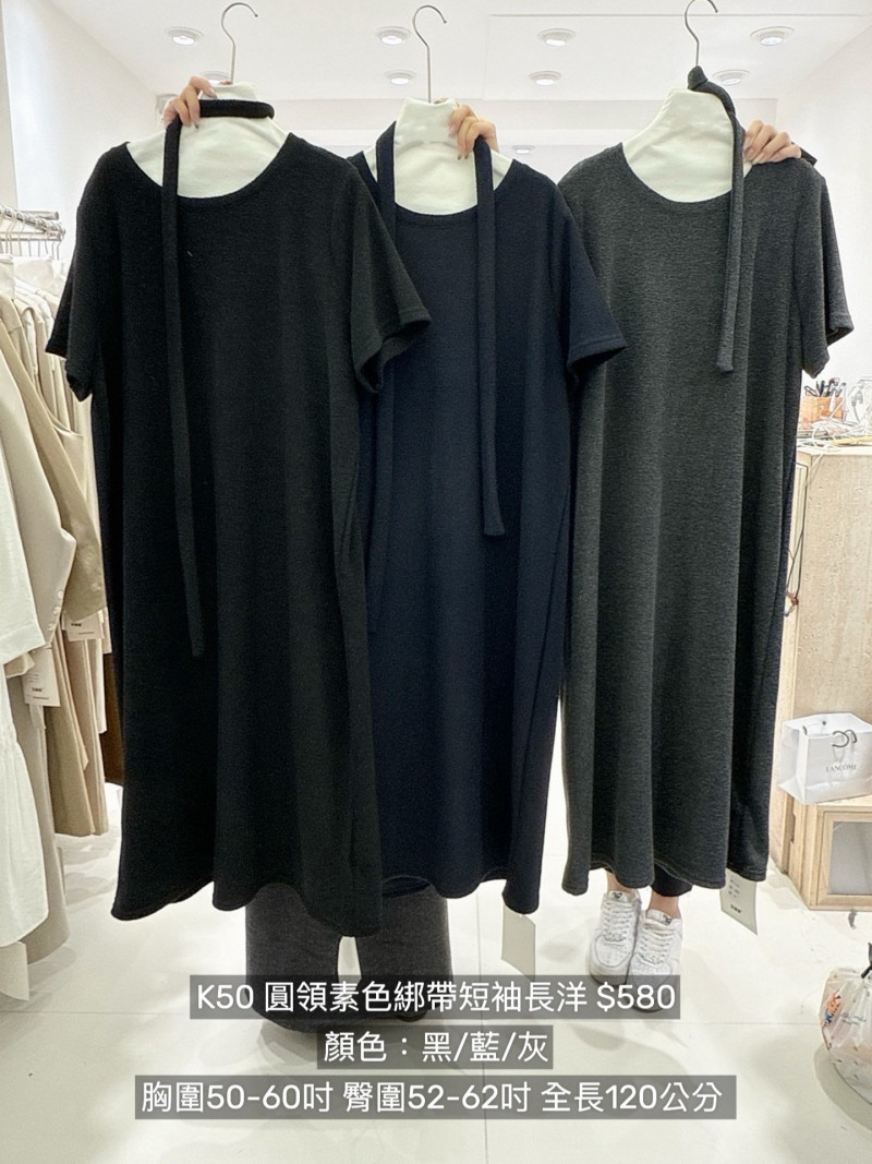 熱賣中🔥 即將售完K50圓領素色綁帶短袖長洋