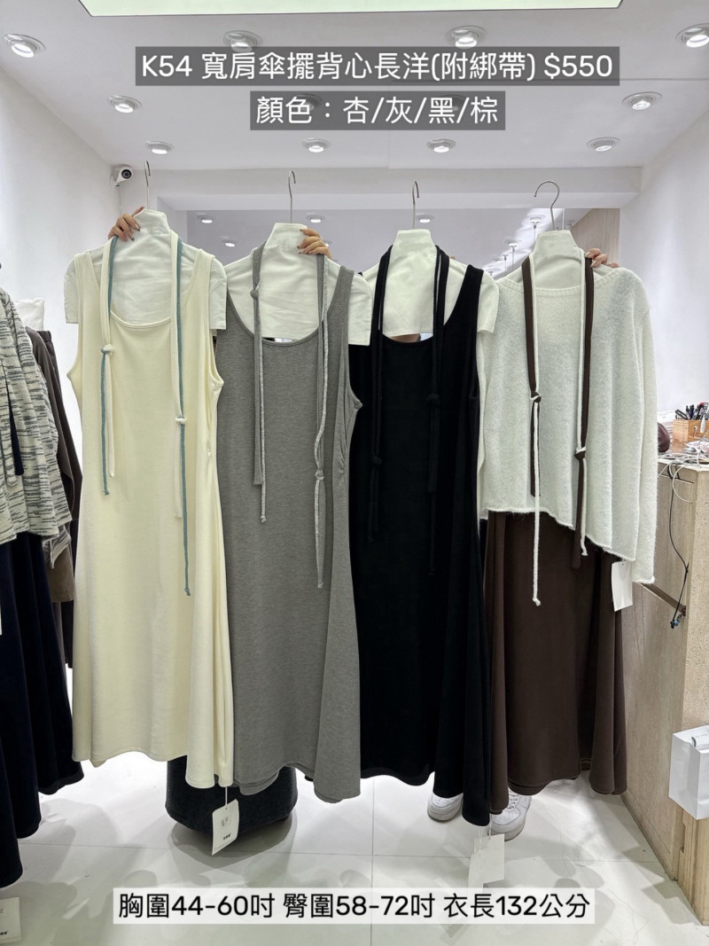 熱賣中🔥 即將售完K54寬肩傘擺背心長洋(附綁帶)