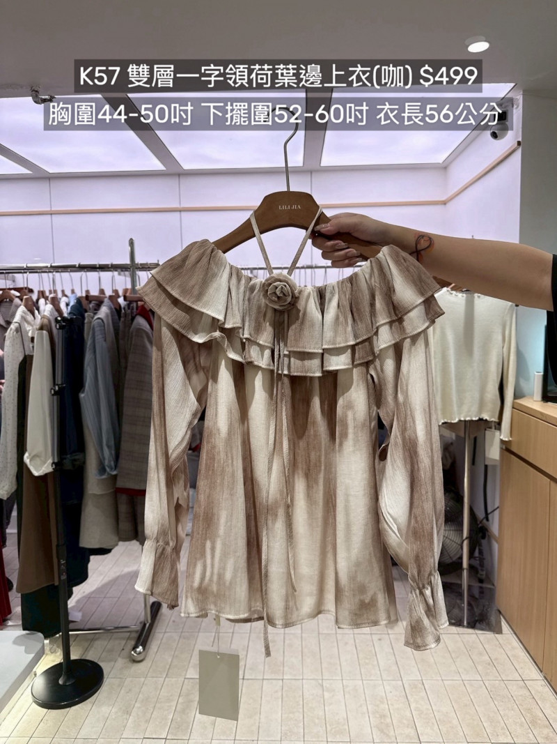 熱賣中🔥 即將售完K57雙層一字領荷葉邊上衣(咖)