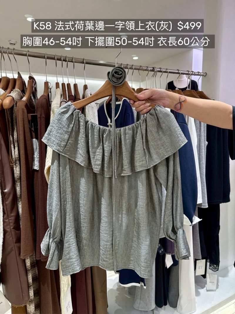 熱賣中🔥 即將售完K58法式荷葉邊一字領上衣(灰)