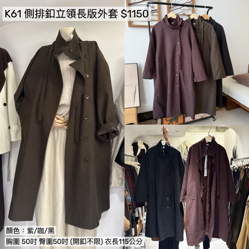 熱賣中🔥 即將售完K61側排釦立領長版外套