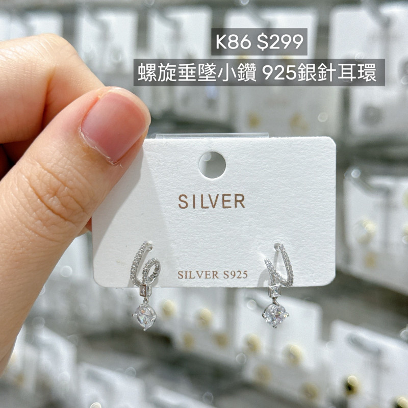 熱賣中🔥 即將售完K86螺旋垂墜小鑽925銀針耳環