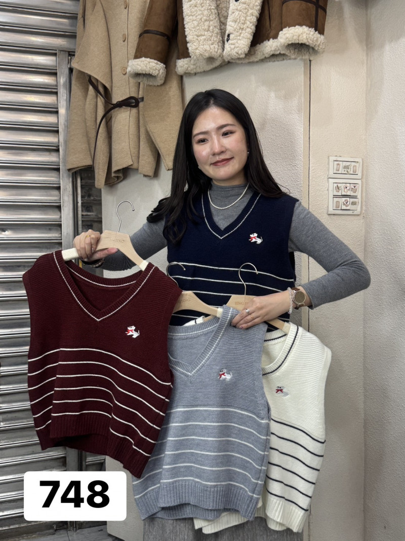 熱賣中🔥 即將售完0109靜靜-(現貨)748V領條紋刺繡狗狗背心
