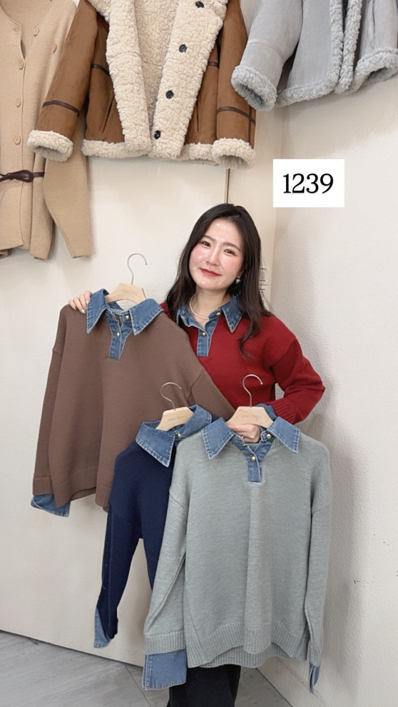 熱賣中🔥 即將售完0109靜靜-(現貨)1239牛仔拼接衫假兩件毛衣
