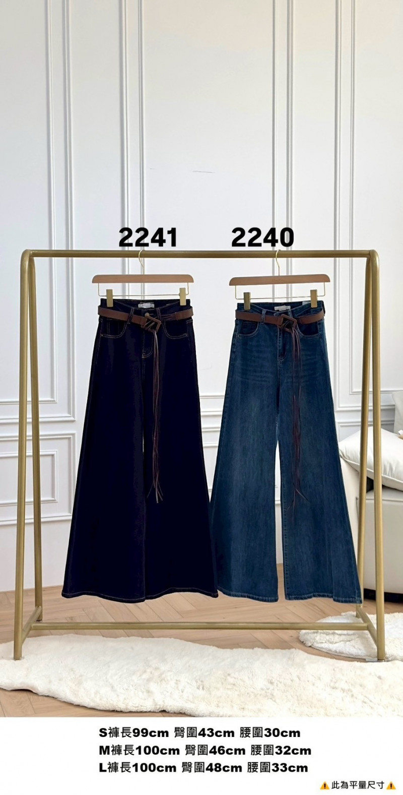熱賣中🔥 即將售完女V0902-2240-銅釦車線牛仔寬長褲附流蘇皮帶