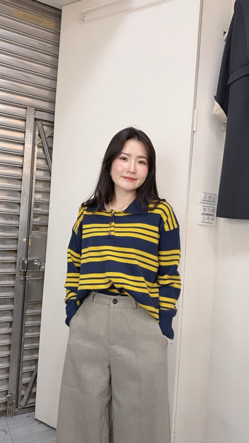 熱賣中🔥 即將售完0109靜靜-(現貨)3150翻領撞色條紋上衣