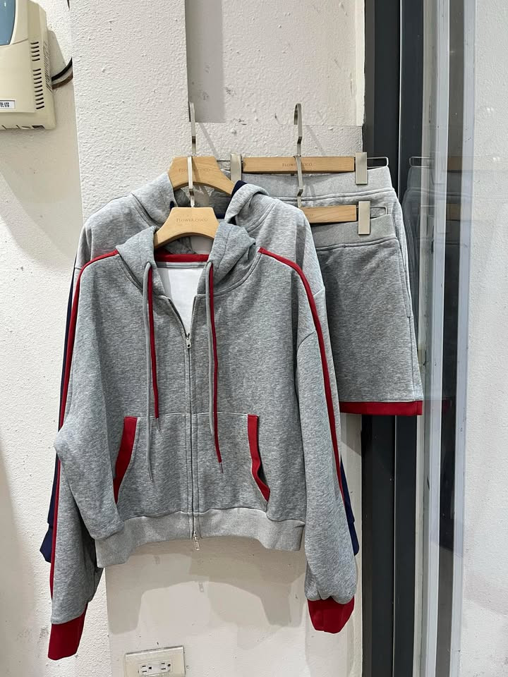 熱賣中🔥 即將售完B25連帽配色抽繩棉外+褲裙SET