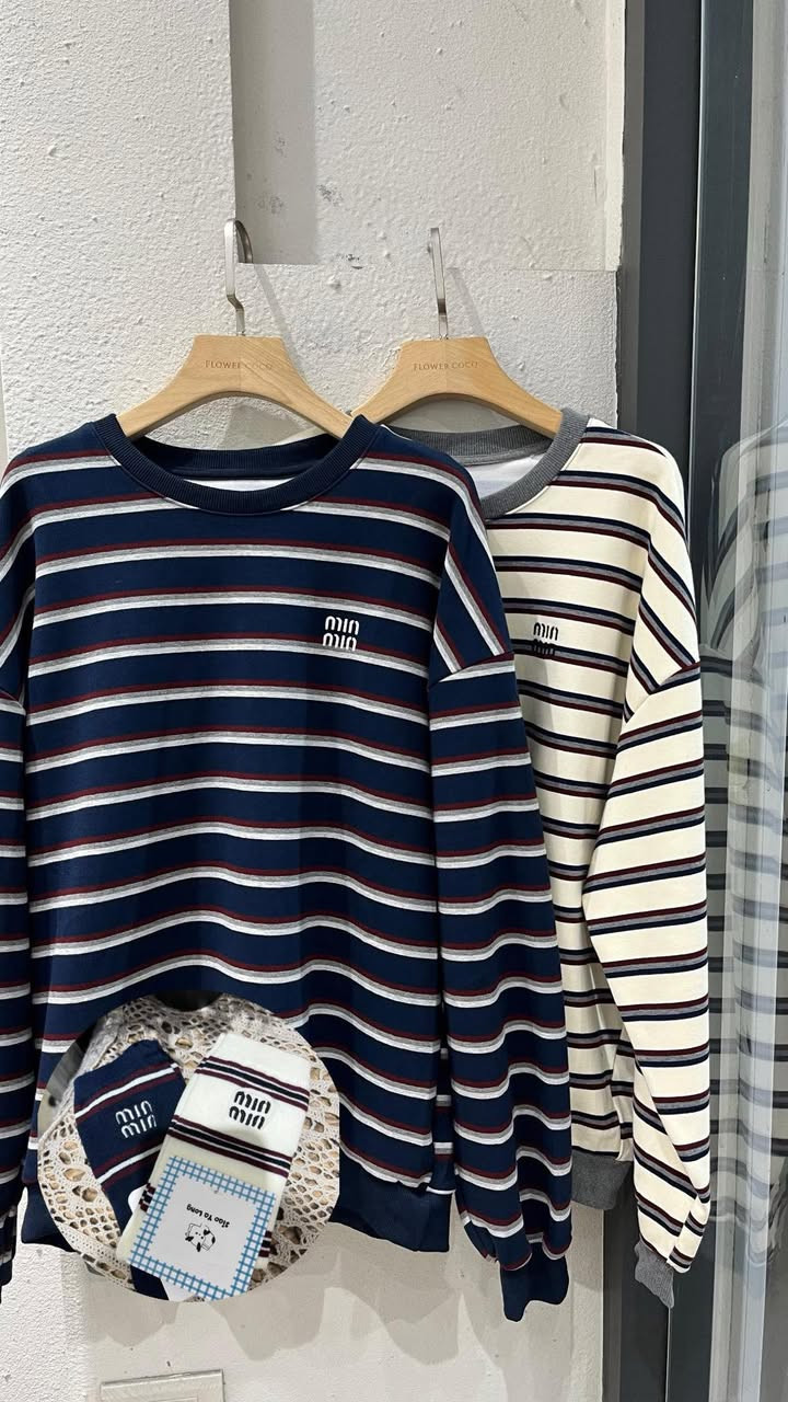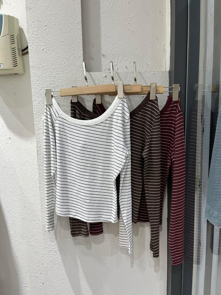 熱賣中🔥 即將售完B04彈力羊毛棉斜肩條紋上衣