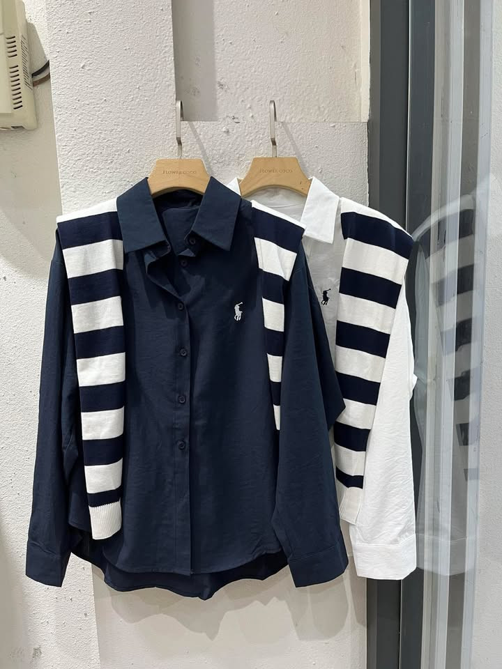 熱賣中🔥 即將售完B36POLO刺繡襯衫+條文披肩SET