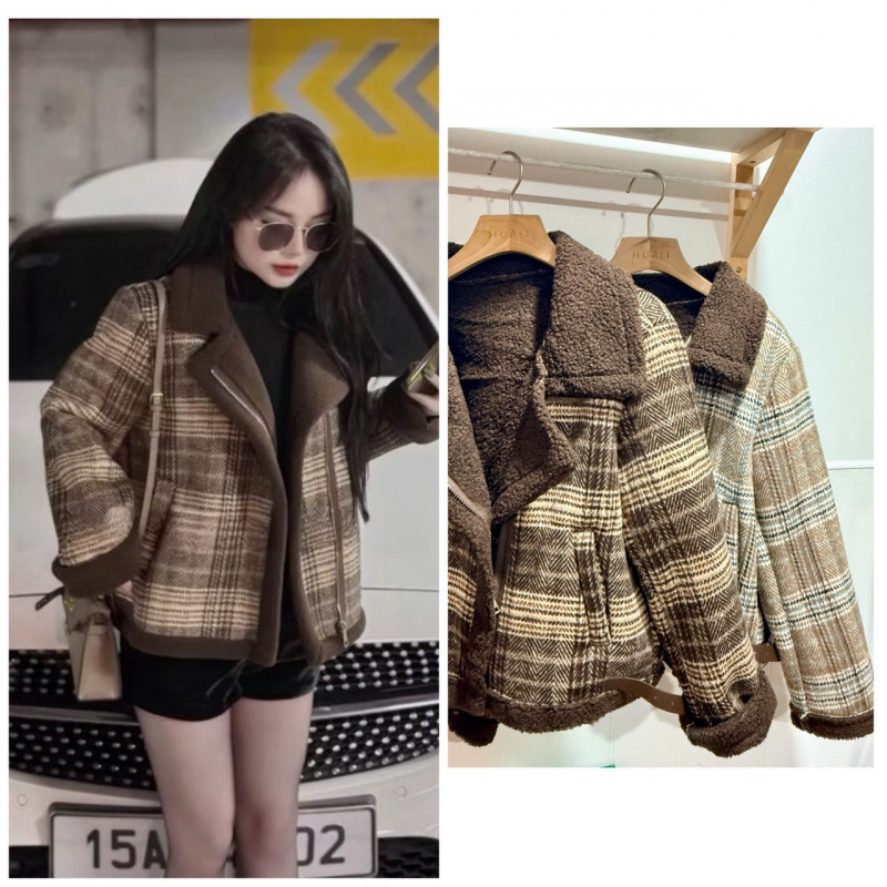 熱賣中🔥 即將售完A229絨毛格紋拉鍊外套