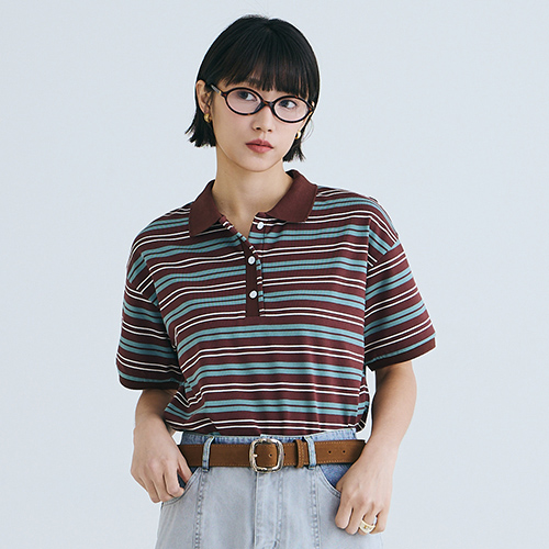 熱賣中🔥 即將售完【E-WEAR】雙色條紋POLO領純棉上衣 - 兩色